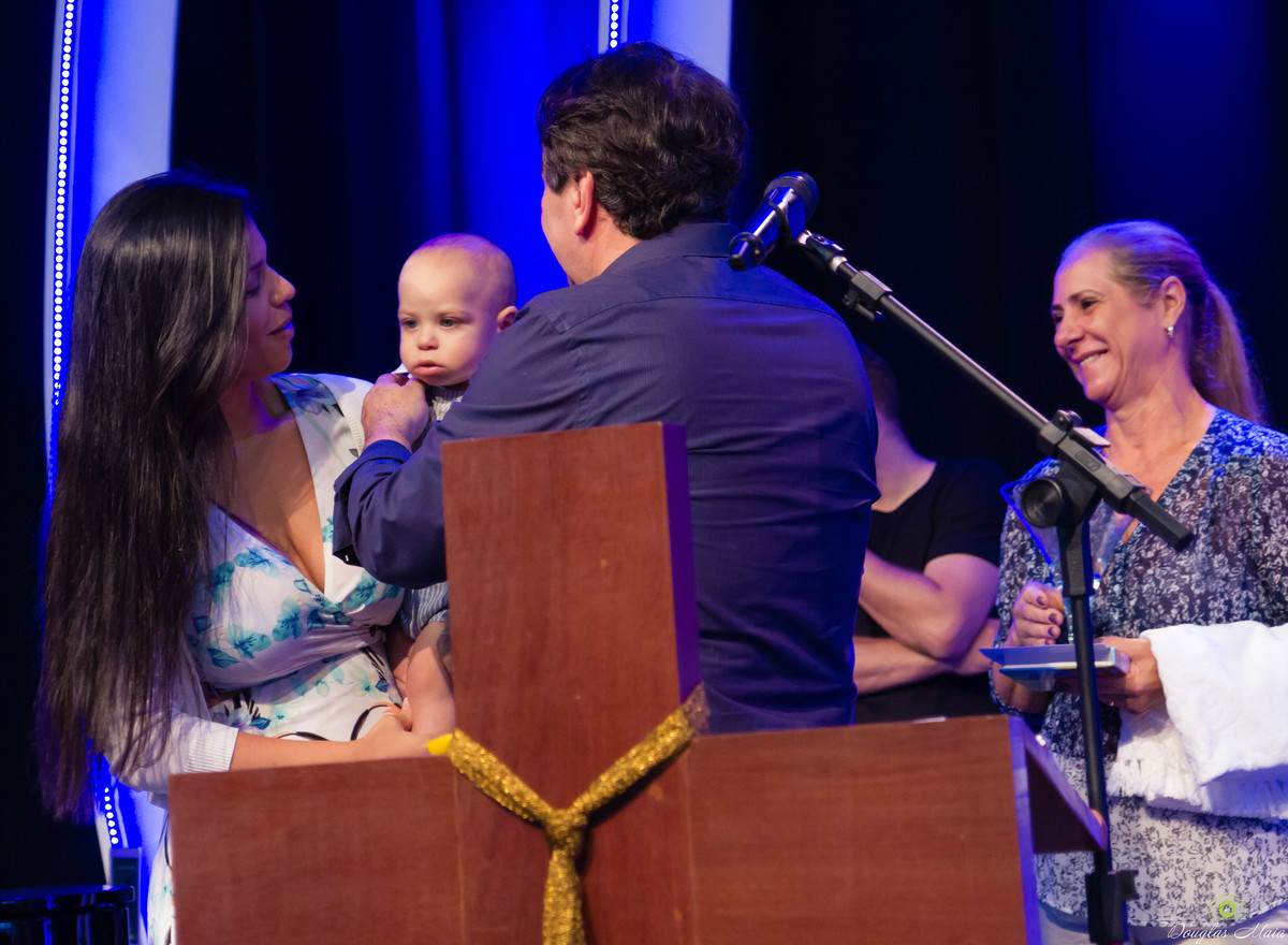 Pastor Simonton apresenta criança a Deus na Igreja Missão Praia da Costa pelo fotógrafo Douglas Maia
